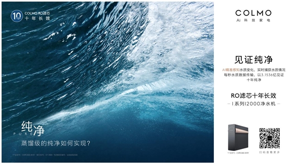 在此背景下,高端家电品牌COLMO从消费者角度出发,深度贴合消费者需求,全新推出COLMO I2000净水机,将源于自然的灵感融入产品,为用户全面提升生活品质。