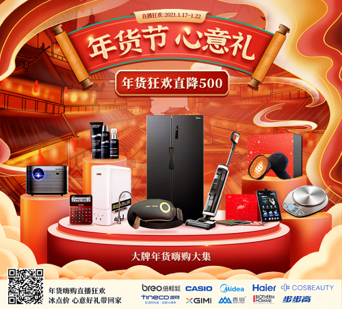年货节心意礼,大牌年货嗨购狂欢它来了,它来了,一场轰轰烈烈的京东年货节带着诸多大牌国货电器来了!~~十大TOP国货品牌:倍轻松、美的冰箱、海尔净水、卡西欧、可思美、碧欧泉、添可、步步高、香山,极米联合打造超级年货节消费日钜惠狂欢,各种500元、300元大额神券限时抢,更有诸多产品低至5折!还等什么,赶紧扫码把这些超值的品质国货家电带回家吧!~