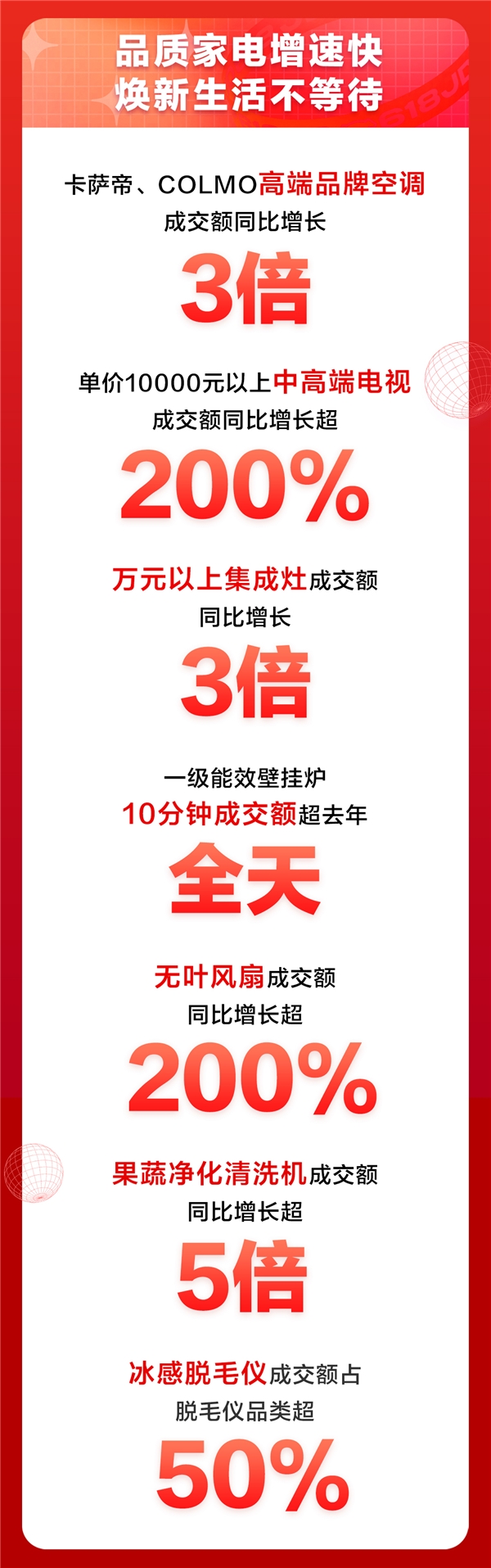 京东618家电品类日高潮迭起,全天销售战报再创新高!