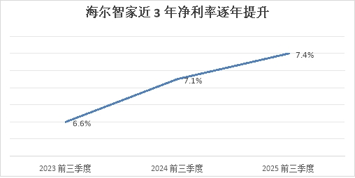 2025年,海尔智家第三季度海外收入同比增长8.25%,前三季度累计同比增长10.5%。