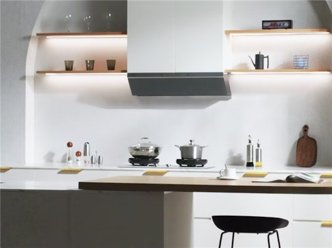 针对薄款烟机吸力不足的行业痛点,其搭载32m³/min大吸力系统,1.5秒内即可锁住爆炒油烟,配合1500Pa 强静压,即使是高层住户也能杜绝油烟倒灌,川菜爆炒、辣椒炝锅也能保持厨房空气清新。同时49dB (A) 的运行噪音远低于国标限值,早上做饭不吵醒家人,烹饪时与家人聊天无需提高嗓门。